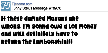 X is if these damned Mayans are wrong, I'm gonna owe a lot money and will definitely have to return the Lamborghini!!