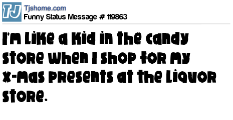 X says I'm like a kid in the candy store when I shop for my x-mas presents at the liquor store.