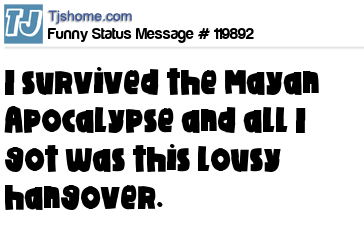 X I survived the Mayan Apocalypse and all I got was this lousy hangover.