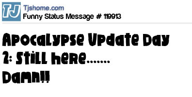 X says Apocalypse Update Day 2: Still here....... Damn!!