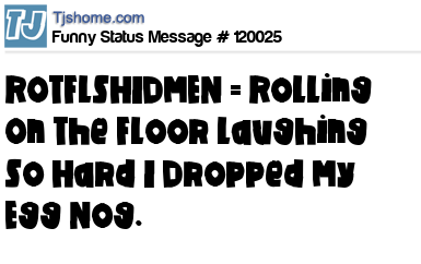 X ROTFLSHIDMEN = Rolling On The Floor Laughing So Hard I Dropped My Egg Nog.