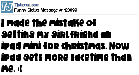 X I made the mistake of getting my girlfriend an ipad mini for christmas. Now ipad gets more facetime than me. :(