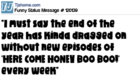 X is "I must say the end of the year has kinda dragged on without new episodes of 'HERE COME HONEY BOO BOO!' every week"