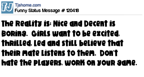 - # 120403 The reality is that a lot of girls out there just aren't prepared for a nice, decent guy.