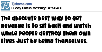 X is The absolute best way to get revenge is to sit back and watch while people destroy their own lives just by being themselves.
