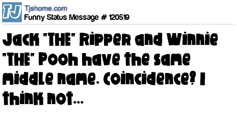 - # 130611 Jack the Ripper and Winnie the Pooh have the same middle name. Coincidence? I think not.