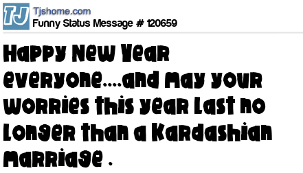 X is Happy New Year everyone....and may your worries this year last no longer than a Kardashian marriage .