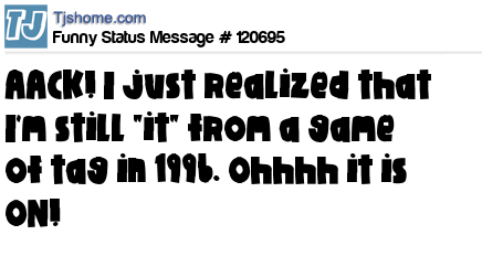 X AACK! I just realized that I'm still "it" from a game of tag in 1996. Ohhhh it is ON!