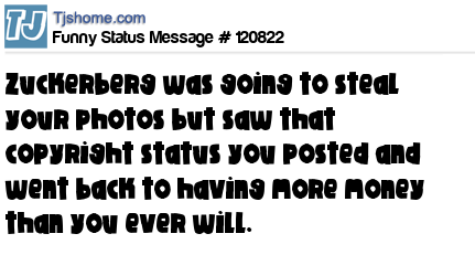 - # 92178 if anyone of my thousand FB friends steal my status that the other site stole...they're gonna think I steal my status's :o