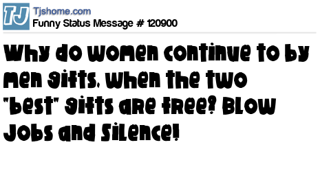- # 83928 Why do women continue to buy men gifts when the 2 best gifts are free. Blow Jobs and Silence