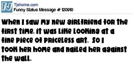 X When I saw my new girlfriend for the first time, it was like looking at a fine piece of priceless art. So I took her home and nailed her against the wall.
