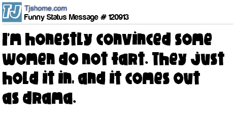 X I'm honestly convinced some women do not fart. They just hold it in, and it comes out as drama.