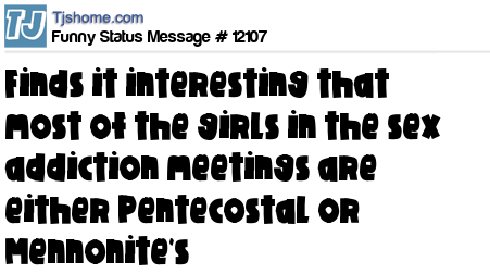 X finds it interesting that most of the girls in the sex addiction meetings are either Pentecostal or Mennonite's