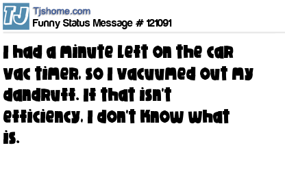 X I had a minute left on the car vac timer, so I vacuumed out my dandruff. If that isn't efficiency, I don't know what is.