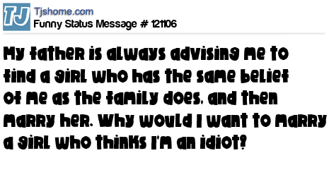 X My father is always advising me to find a girl who has the same belief of me as the family does, and then marry her. Why would I want to marry a girl who thinks I'm an idiot?