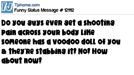 X Do you guys ever get a shooting pain across your body like someone has a voodoo doll of you & they're stabbing it? No? How about now?