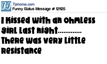 - # 68355 I had sex with an ohmless person last night. There was very little resistance. (most of you will be too dumb to get this)