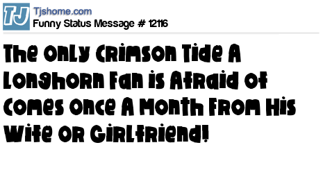 X says The Only Crimson Tide A Longhorn Fan is Afraid of Comes Once A Month From His Wife Or Girlfriend!