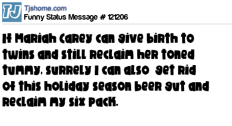 X says If Mariah Carey can give birth to twins and still reclaim her toned tummy, surrely I can also get rid of this holiday season beer gut and reclaim my six pack.