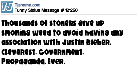 X Thousands of stoners give up smoking weed to avoid having any association with Justin Bieber. Cleverest. Government. Propaganda. Ever.