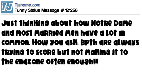 X is Just thinking about how Notre Dame and most married men have a lot in common. How you ask, Bpth are always trying to score but not making it to the endzone often enough!!