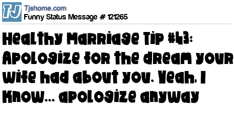 X Healthy Marriage Tip #43: Apologize for the dream your wife had about you. Yeah, I know... apologize anyway ツ