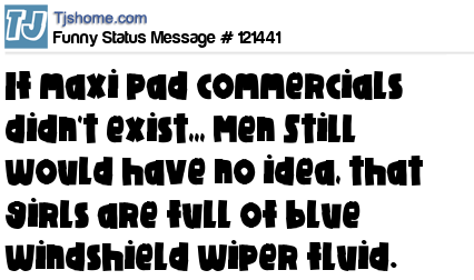 X If maxi pad commercials didn't exist,,, Men Still would have no idea, that girls are full of blue windshield wiper fluid.