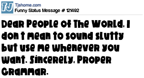 X is Dear People of The World, I don’t mean to sound slutty but use me whenever you want. Sincerely, Proper Grammar.