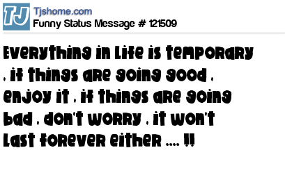 X Everything in life is temporary , if things are going good , enjoy it , if things are going bad , don't worry , it won't last forever either .... !!