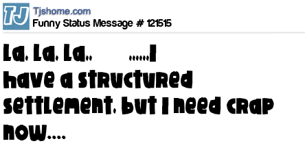 X La, la, la,,♫♪♫,,,,,,I have a structured settlement, but I need crap now....