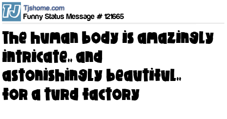 X The human body is amazingly intricate,, and astonishingly beautiful,, for a turd factory
