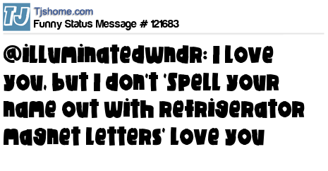 X says @illuminatedwndr: I love you, but I don't 'Spell your name out with refrigerator magnet letters' love you