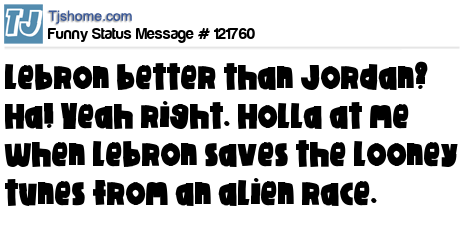 - # 124509 LeBron as good as Jordan?! Ha! Call me when LeBron saves the Looney Tunes from an alien race.