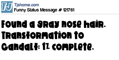 X is Found a gray nose hair. Transformation to Gandalf: 1% complete.
