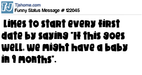 X likes to start every first date by saying "If this goes well, we might have a baby in 9 months".
