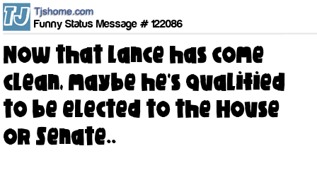 - # 122084 Now that Lance has come clean, I guess he's qualified to run for election in the House or Senate..