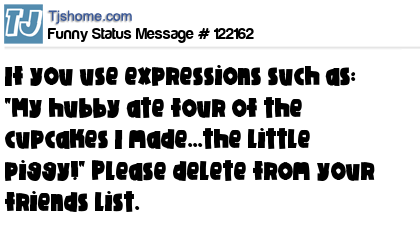 X If you use expressions such as: "My hubby ate four of the cupcakes I made...the little piggy!" Please delete from your friends list.