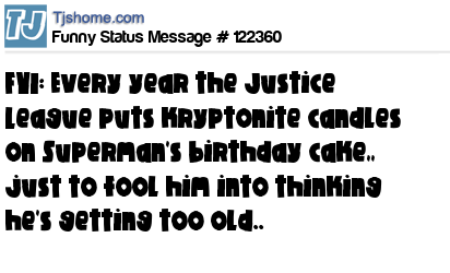 X FYI: Every year the Justice League puts kryptonite candles on Superman's birthday cake,, just to fool him into thinking he's getting too old..