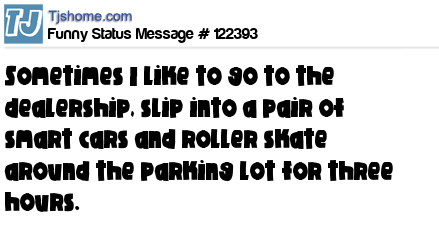 X Sometimes I like to go to the dealership, slip into a pair of smart cars and roller skate around the parking lot for three hours.