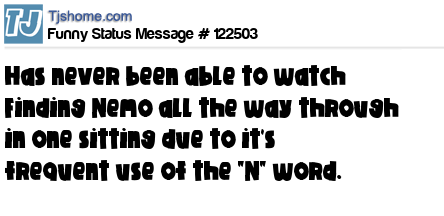 X has never been able to watch Finding Nemo all the way through in one sitting due to it's frequent use of the "N" word.