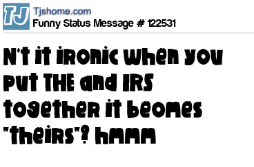 X says n't it ironic when you put THE and IRS together it beomes "theirs"? hmmm