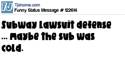 - # 122341 It;s so cold outside that by the time I walked back to the car, the footlong I got at Subway shrunk to a 6 inch.