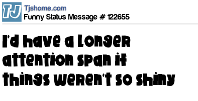 - # 196474 Doctors say that your attention span is like a muscle that can be strengthened. I didn't read the rest of the article because I saw a shiny thing.