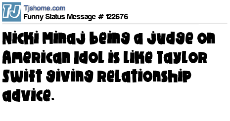 - # 111798 Nicki Minaj judging singers on "American Idol" makes about as much sense as Mitt Romney judging a drag queen contest in West Hollywood.