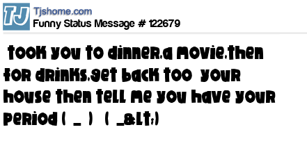 - # 82381 took you to dinner,a movie,then for drinks,get back to your house then tell me you have your period (・_・)ノ”(ノ_<)