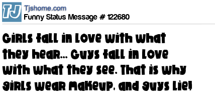 - # 56107 Girls fall in love with what they hear, Boys fall in love with what they see, that's why girls wear make up and boys lie.