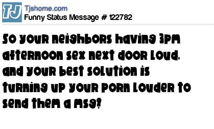 X is So your neighbors having 3pm afternoon sex next door loud, and your best solution is turning up your porn louder to send them a msg?