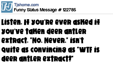 X says Listen. If you're ever asked if you've taken deer antler extract, "No. Never." isn't quite as convincing as "WTF is deer antler extract?"