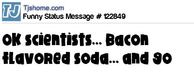 - # 110768 My dentist said that bacon and soda works the same as toothpaste. Friends have said she prolly meant baking soda....but I disagree. :)