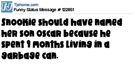 X Snookie should have named her son Oscar because he spent 9 months living in a garbage can.